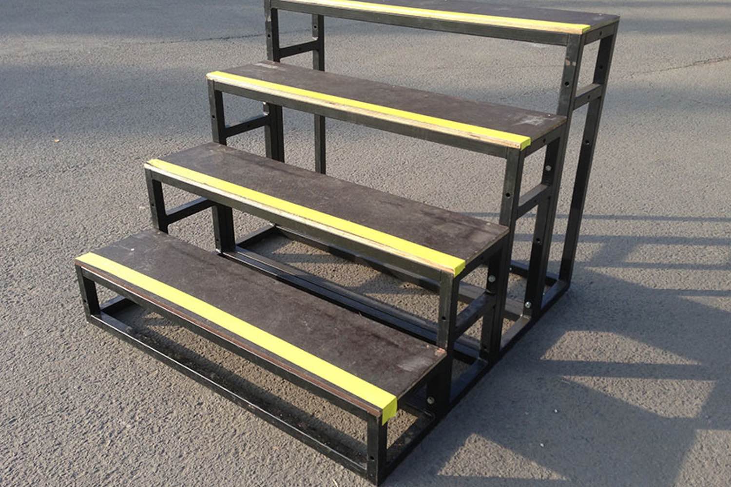 Unsere Bühnentreppen des Herstellers Bütec gewährleisten einen sicheren Auf- und Abstieg der Bühne. In verschiedenen Größen lieferbar, passt sich perfekt Ihrer Bühne an.